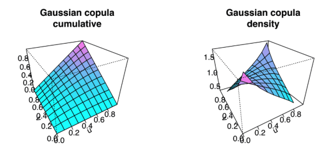 Wireframe plot of bivariate Gaussian distribution and density function, reproduced from Kenton (2024). Retrieved from https://www.investopedia.com/terms/c/copula.asp.