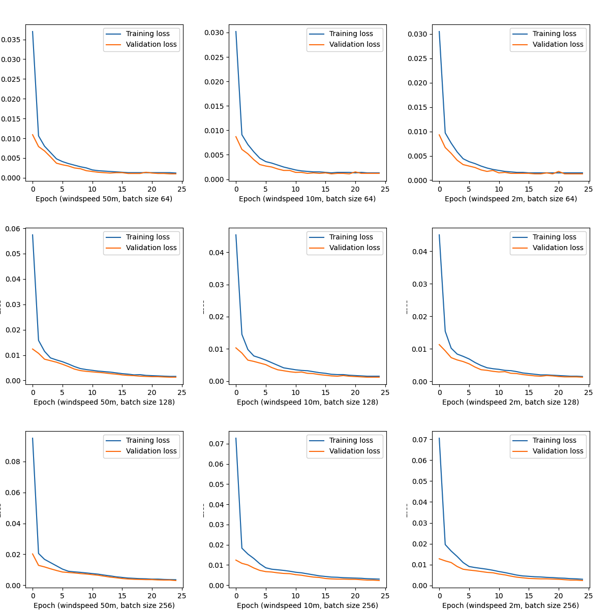 \[\begin{equation} \begin{split} \label{eq:lstm} f_t &= \sigma(W_{fh} h_{t-1} + W_{fx} x_t + b_f), \\ i_t &= \sigma(W_{ih} h_{t-1} + W_{ix} x_t + b_i), \\ \tilde{c}_t &= \tanh(W_{\tilde{c} h} h_{t-1} + W_{\tilde{c} x} x_t + b_{\tilde{c}}), \\ c_t &= f_t \cdot c_{t-1} + i_t \cdot \tilde{c}_t, \\ o_t &= \sigma(W_{oh} h_{t-1} + W_{ox} x_t + b_o), \\ h_t &= o_t \cdot \tanh(c_t), \end{split} \end{equation}\]where \(\boldsymbol{W}\) denotes the weight matrices, \(\boldsymbol{b}\) the bias vectors, \(\sigma\) the logistic sigmoid function, and \(tanh\) the hyperbolic tangent function.