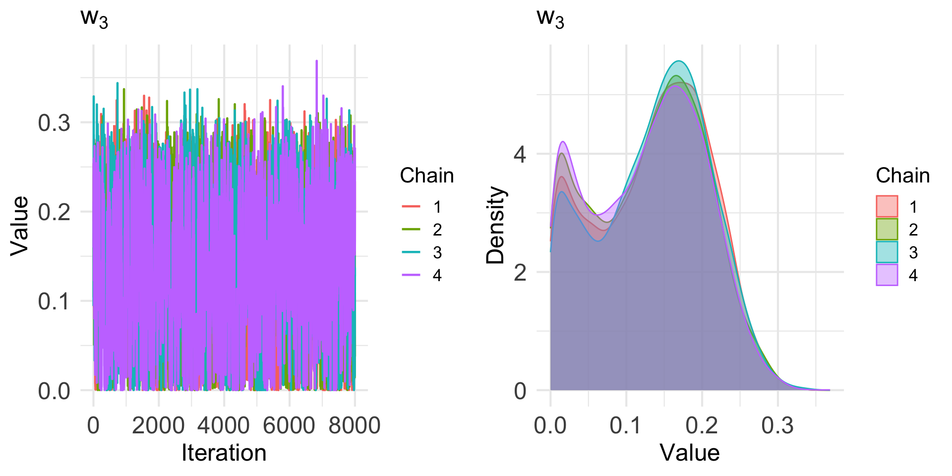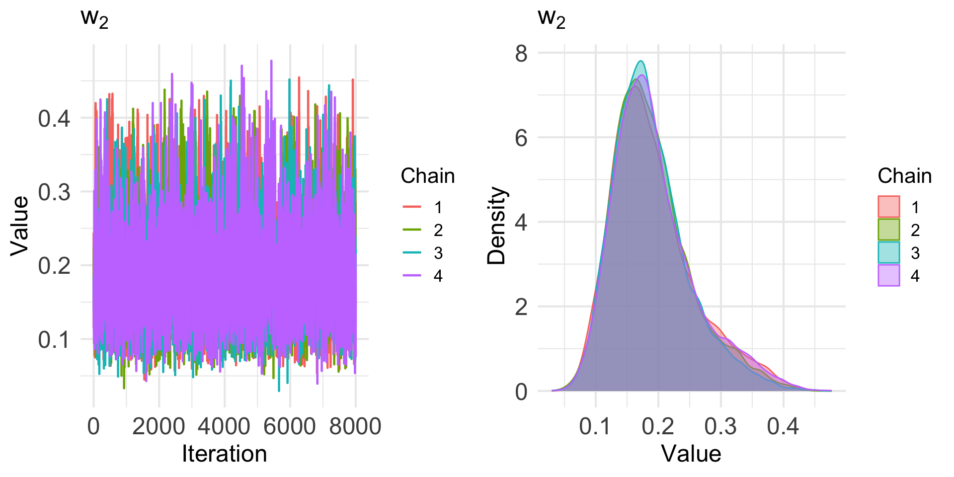 Convergence Diagnostics (\(\boldsymbol{w}\), \(\boldsymbol{\rho}\), \(\alpha\), \(\beta\))