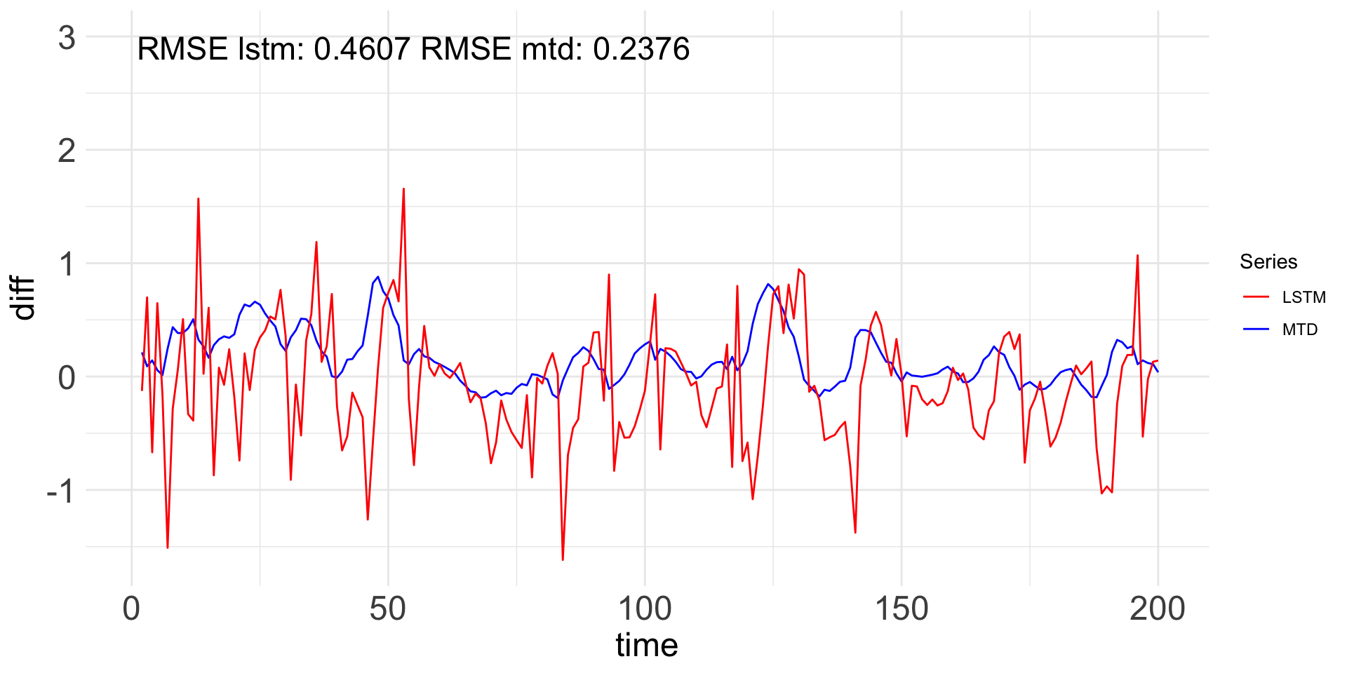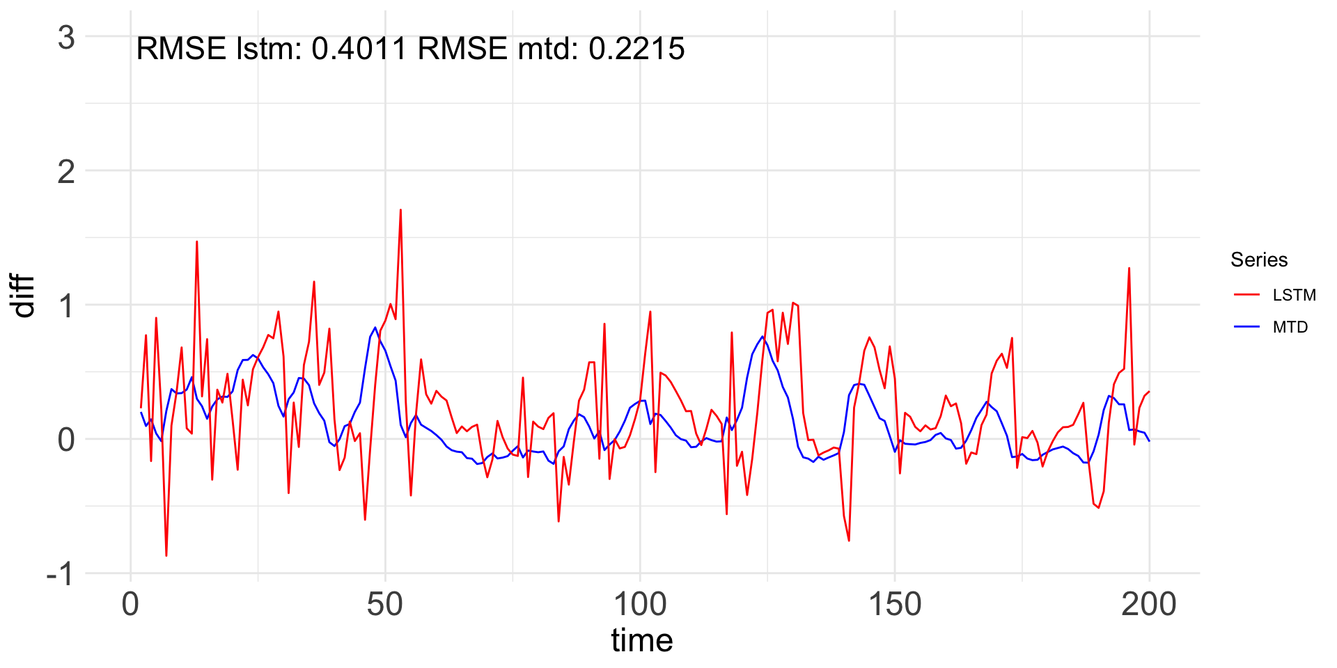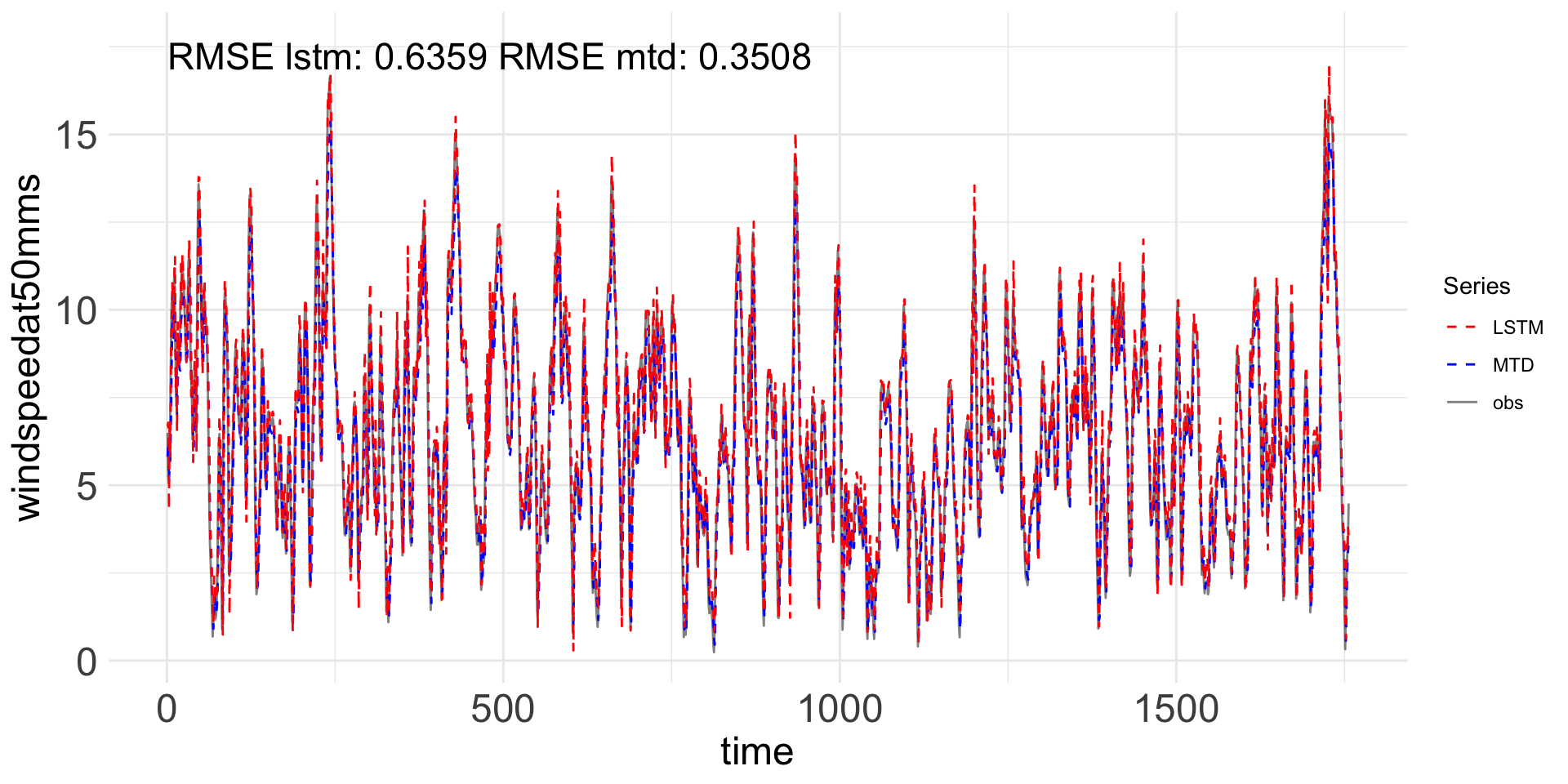 Our proposed MTD models offers a flexible, robust, and interpretable framework for modeling complex continuous and zero-inflated time series, outperfoming LSTM in the settings considered.