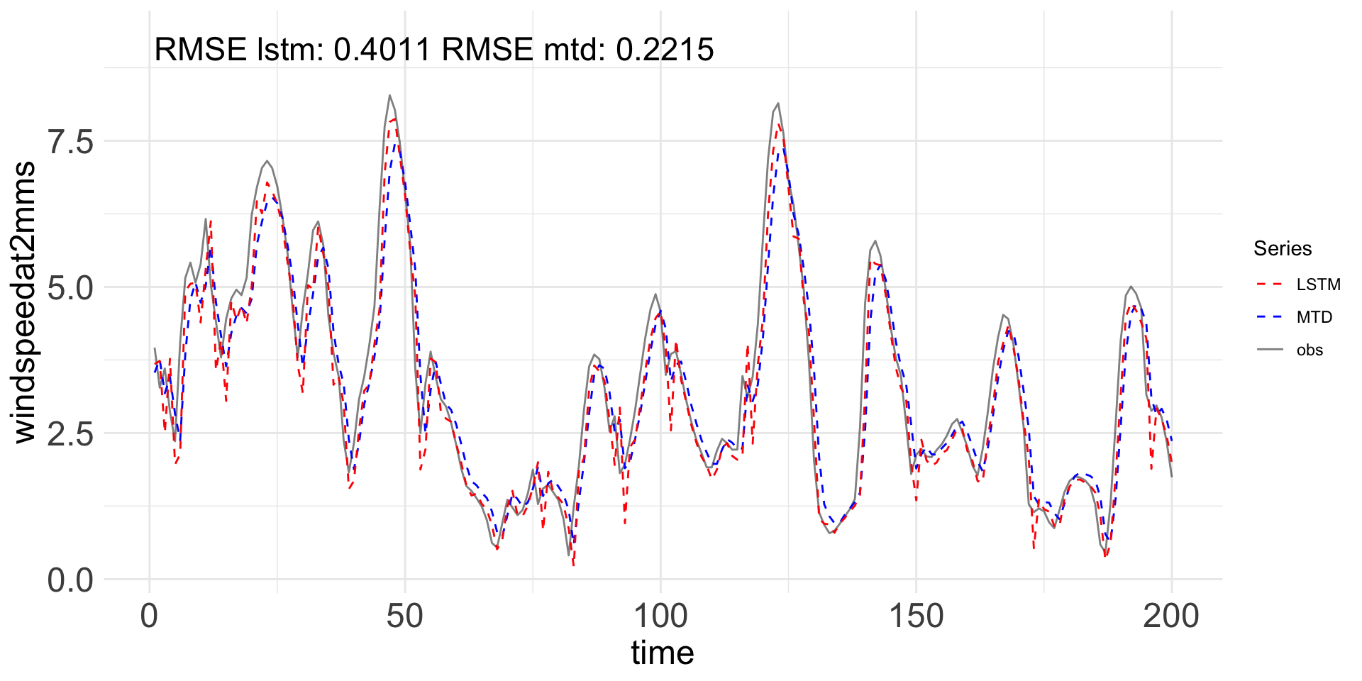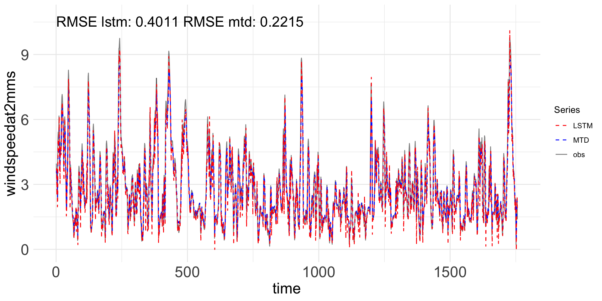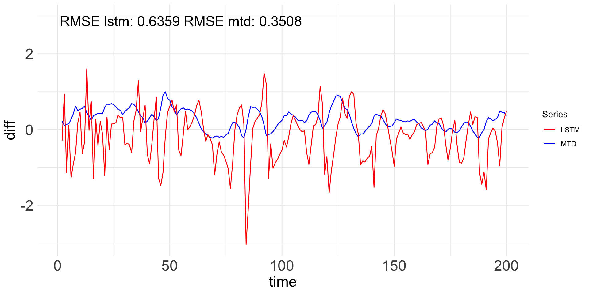 Our proposed MTD models offers a flexible, robust, and interpretable framework for modeling complex continuous and zero-inflated time series, outperfoming LSTM in the settings considered.
