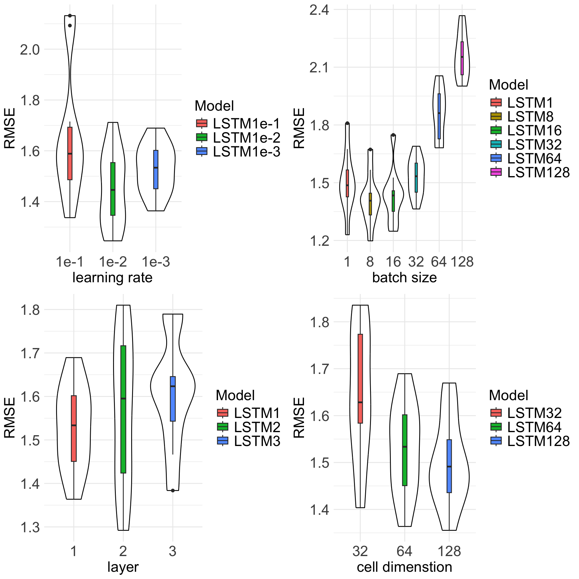 R and C++ and compiled and executed on a high-performance computing (HPC) cluster.For LSTM, we reuse the default configuration for these hyperparameters:
